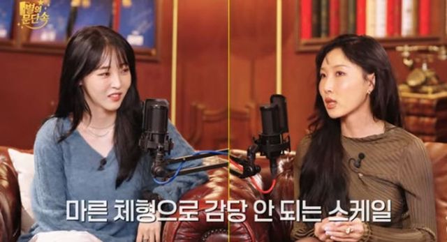 현재는 관리를 해서 45kg이라는 문별의 말에 화사는 “진짜? 나랑 별 차이 안 나네?”라고 흐뭇해했다.