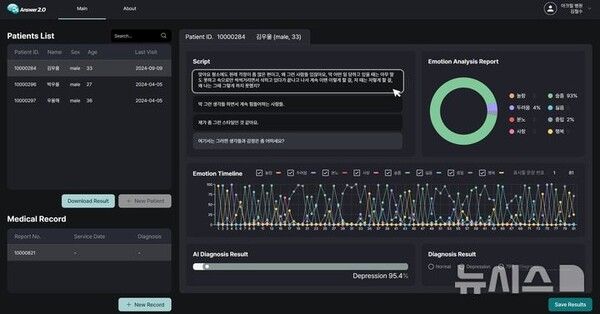 김대진 서울성모병원 교수가 주도적으로 연구에 참여한 이 기술은 지난해 말 식품의약품안전처에 2등급 의료기기로 허가를 받았으며, 진료 현장에서 사용을 준비 중이다. 대한의학회와 질병관리청이 공동 발간한 '우울증 임상진료지침'의 우울증 모니터링 및 평가 기준에 따라 환자 면담 기록지를 데이터화 하고 환자 답변 중 놀람, 두려움, 분노, 사람, 슬픔, 싫음, 행복, 중립 등의 감정을 선별하고 AI 알고리즘을 거쳐 우울증을 확률로 제시하는 원리다.