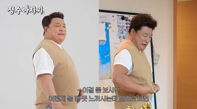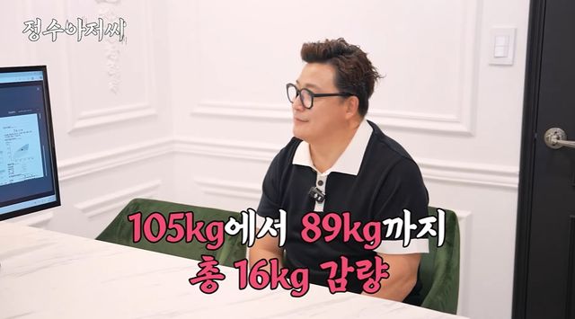 윤정수는 과거 입었던 옷을 보여주며 체중 감량으로 인한 변화를 보여줬다. 그는 105kg에서 89kg까지 총 16kg을 감량했다. 전문가는 "체중 감량에 비해 복부가 많이 빠졌다"라고 설명했다.