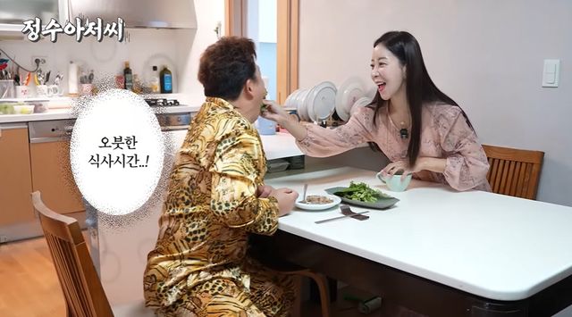 이어 윤정수는 따뜻한 차를 마셨다. PD가 "원래는 제로콜라 드셨지 않나"라며 폭로하자 윤정수는 "쉿"이라며 입을 막았다. 원진서는 손수 싼 쌈을 윤정수에게 먹이는 등 다정한 모습을 보였다.