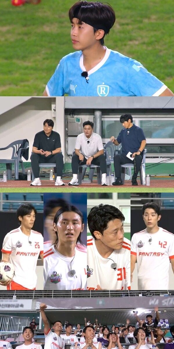 현장 분위기도 폭발적. ‘뭉찬4’ 홈구장에서 진행되는 만큼 ‘판타지올스타’를 향한 응원 열기가 압도적이었는데, 응원단장으로 나선 마선호를 필두로 선수단이 하나로 뭉쳐 구호를 외치며 함성을 쏟아낸다.