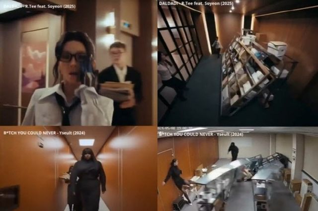 두 곡의 뮤직비디오 모두 직장인들이 업무를 보고 있는 사무 공간에 갑작스럽게 나타난 이들이 소란을 피우는 내용을 담고 있다.