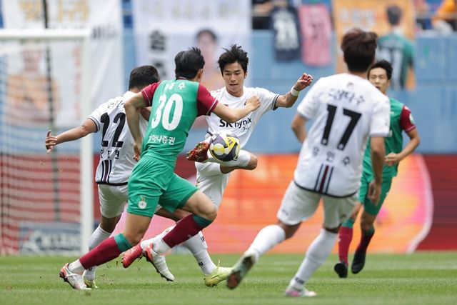 후반에도 제주의 실점은 이어졌다. 후반 5분 대전 주민규와 마사 콤비가 세번째 득점을 제주 골문에 꽂아넣었다.
