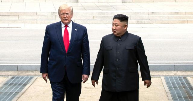 도널드 트럼프 미국 대통령과 북한 김정은 국무위원장이 2019년 6월 30일 오후 판문점 군사분계선에서 만나 함께 북측으로 넘어갔다가 남측으로 돌아오고 있다. / 연합뉴스