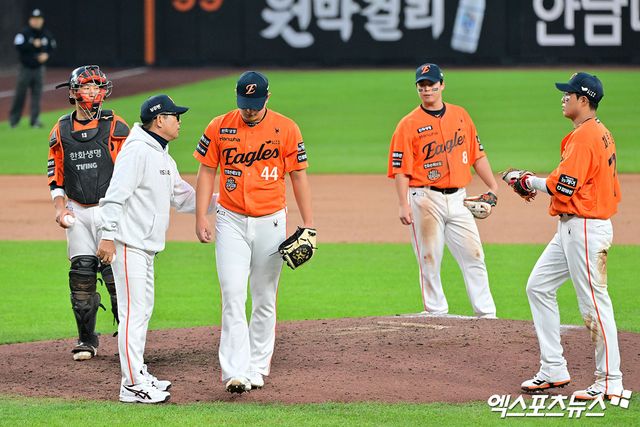 ▲팀으로서는 조금 더 깔끔하게 끝났으면 했는데, 김서현 선수가 마무리를 하지 못했다. 김서현이 자신감을 살리는 것도 중요하고 팀 이기는 것도 중요하니까 내일 상의하려고 한다. 교체 결정은 정규시즌이라면 달랐을 텐데, 포스트시즌은 이 기회가 지나면 다음 기회가 없다. 김범수가 쉽지 않은 상황에서 큰일을 했다.