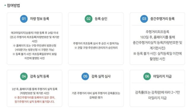 심사 과정에서는 기준 주행거리와 실제 주행거리를 비교해 감축률(%) 또는 감축량(㎞)을 산정한다. 이 결과에 따라 포인트가 지급되며 적립한 포인트는 자동차세 납부, 모바일·문화상품권 구입, 기부 등으로 활용할 수 있다.