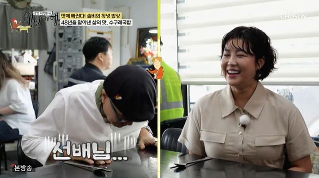 솔비는 “가수로서는 20년이다. 선생님은 데뷔 몇 년 차냐”고 되물었다. 당황한 허영만은 “백반기행은 7년 차다”고 답했고, 솔비는 “제가 선배다. 저는 20년 차다”고 받아쳤다. 이에 허영만은 솔비를 향해 “선배님”이라며 고개를 숙여 웃음을 자아냈다.