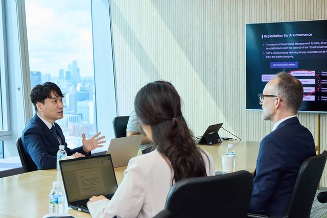 SKT 차호범 CPO는 최근 을지로 SKT 본사를 방문한 유엔 인권최고대표사무소 팀 엥겔하르트(Tim Engelhardt) 인권담당관 등에게 2024년 자체 수립한 AI 거버넌스 기본 원칙 'T.H.E. AI'와 최근 공식 오픈한 'AI 거버넌스 포털' 등 지속가능한 AI 생태계 조성을 선도하는 SKT의 행보를 자세히 소개했다.