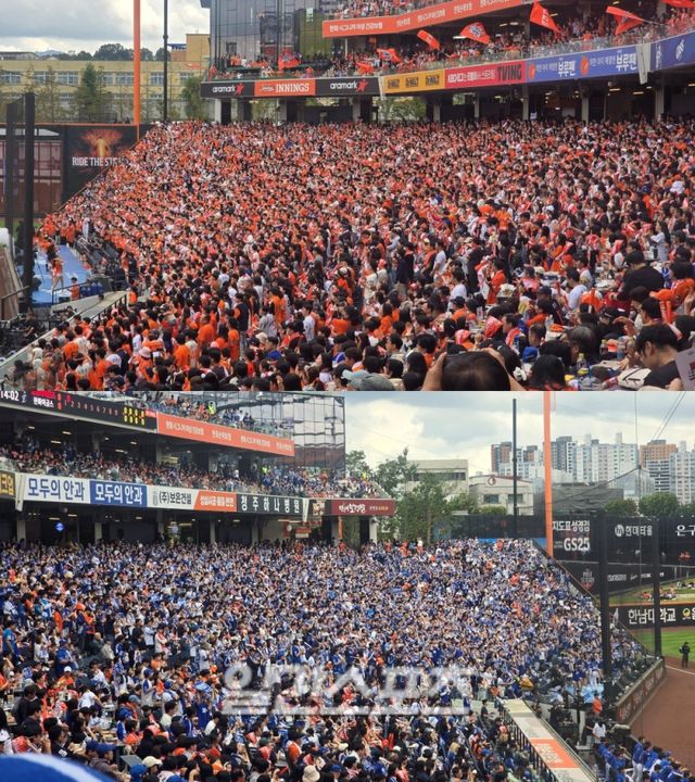 이날도 만원 관중이 유력하다. 전날 1차전에선 흐린 날씨에도 1만6750명의 만원 관중이 들어왔다. PS 28경기 연속 매진 행진이다. 일요일에 열린 이날 2차전에서도 만원 관중이 유력하다.