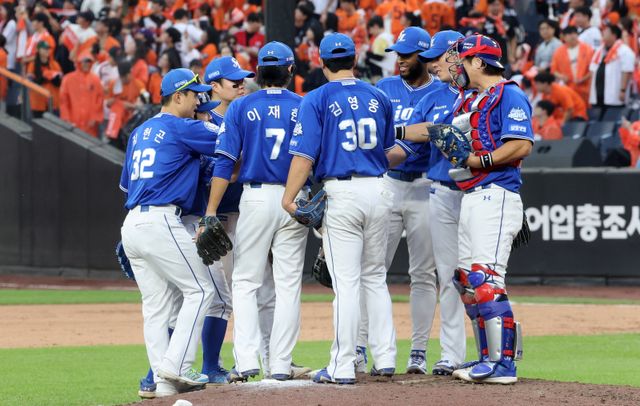 "(주전) 포수 강민호 얘기를 많이 나누는 것 같다. 경기 들어가기 전에 정리하고 분석하더라. 강민호의 리드도 좋았다. 최원태는 공에 움직임이 많은 투수다. 정규시즌에 비해 구속을 낮추고 커맨드에 더 신경을 쓴 것도 좋은 영향을 미친 것 같다."