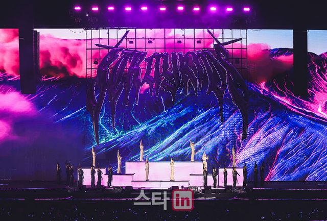 다시 ‘완전체’로 등장해 ‘워킨 온 워터’(Walkin On Water), ‘신메뉴’(神메뉴), ‘특’ 무대를 펼칠 땐 한복을 재해석한 의상을 입고 등장해 특별함과 재미를 더했다. 사자탈, 마패 등 전통적 요소를 활용한 소품을 활용해 ‘K’ 매력을 극대화한 점도 눈에 띄었다.