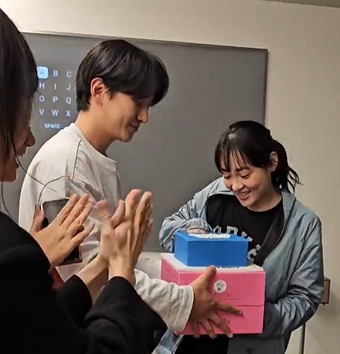 이준호는 케이크를 들고 등장했고, 김민하가 케이크를 컷팅하자 배우들과 제작진이 환호를 터뜨렸다. 이어 이준호가 “낼 막촬 파이팅!”을 외치자 현장에 있던 모두가 “파이팅!”으로 화답하며 훈훈한 분위기를 연출했다. 그는 “케이크 너무 귀엽다. 이런 걸 언제 또 준비하셨냐”며 미소를 보이며 현장의 온기를 더했다.