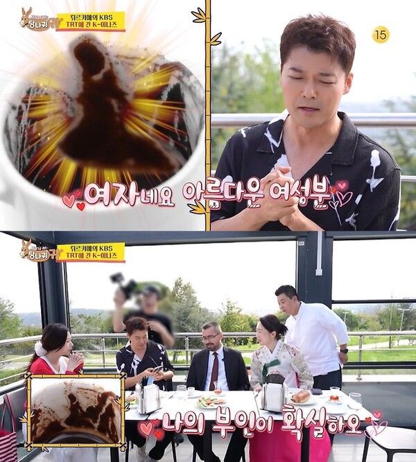 TRT 부사장은 튀르키예 전통 커피를 대접했다. "커피를 다 마시면 잔 바닥에 침전물이 남는다"며 커피점을 봐주겠다고 제안했다. 전현무 커피잔을 보고 "여성 한 명이 보인다. 엄지인 아나운서처럼 한복을 입고 있다"고 설명했다.