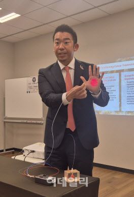 알루미녹스의 핵심 구성요소는 근적외선(690㎚)에서 활성화하는 광활성 염료 ‘IR700’이다. 이 염료가 암세포 표면을 인식하는 항체에 결합해 종양세포에 달라붙으면 특정 파장의 빛을 쬐는 순간 세포막이 파괴된다. 화학 독성물질을 주입하는 기존 화학 요법과 달리 IR700은 빛을 에너지원으로 삼아 세포를 물리적으로 괴사시키는 방식이다. 이 과정에서 항원이 방출돼 면역세포를 자극하고, 종양 미세환경이 차가운(cold) 상태에서 뜨거운(hot) 상태로 전환되며 면역 반응이 유도된다는 게 마에다 사장의 설명이다.