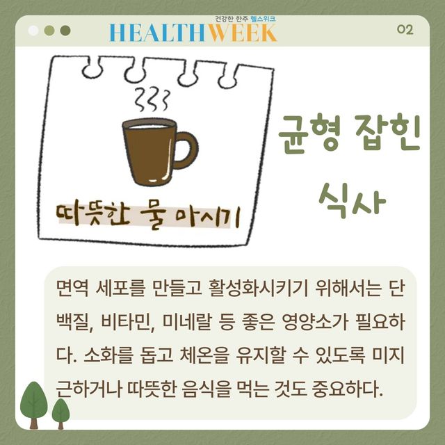 환절기는 아침저녁으로 기온 차가 커서 우리 몸의 면역력이 뚝 떨어지기 쉬운 시기이다. 이럴 때 건강을 지키는 가장 확실하고 기본적인 방법을 알아보자.