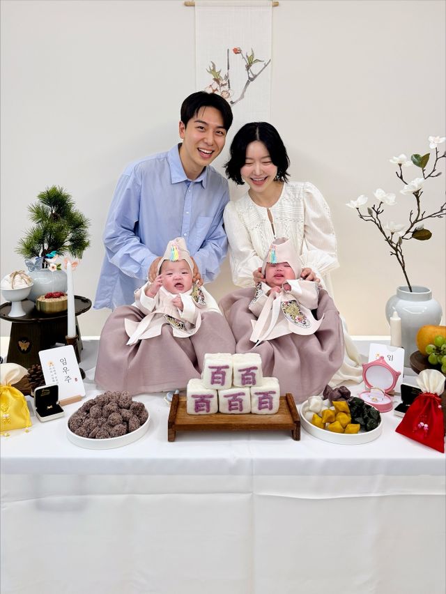 공개된 사진 속에는 레이디 제인과 임현태가 직접 차린 백일상에서 예쁜 한복을 입고 앉아있는 우주와 별, 쌍둥이 자매의 모습이 담겨 있다. 미소가 끊이지 않는 엄마 아빠의 행복한 표정이 훈훈함을 자아낸다.