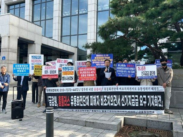 홈플러스 기업회생 사태로 손실을 입은 유동화 전자단기사채(ABSTB·전단채) 투자자들이 금융감독원 국정감사를 하루 앞두고 피해 구제를 재차 촉구했다.