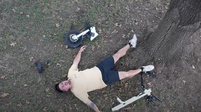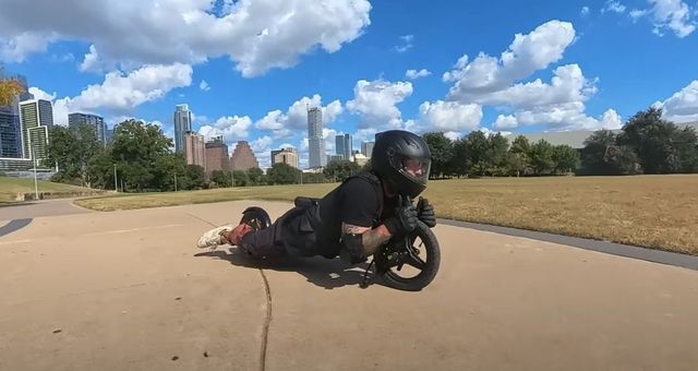 그러고는 오랜 친구를 되살리기 위해 어떤 수단이든 동원하겠다는 결심으로 자신과 자전거를 합쳐버리는 ‘프랑켄슈타인식’ 부활을 시도했다. 제작 중간에는 자신이 직접 쓰는 만화 세계관과 연결된 짧은 장면들도 등장했다. 하지만 이번 영상의 핵심은 바로 그가 소형 도심형 전기자전거를 분해해, 그 부품을 이용해 ‘슈트’를 완성했다는 점이다.