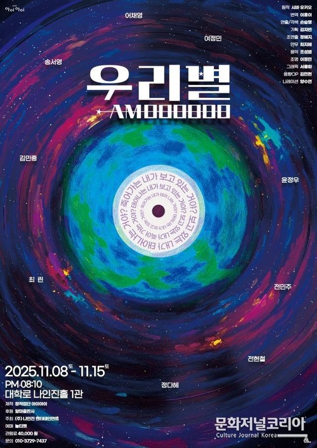 문화저널코리아 김영일 기자 | 창작집단 <별무리>, <물고기 장례식> 등의 작품을 창작해온 대학로의 신예 극단 창작집단 아이아이가 제1회 심야연극제 참가작으로 연극 <우리별> 재연을 대학로 나인진홀 1관에서 11월 8일~15일 동안 선보인다.