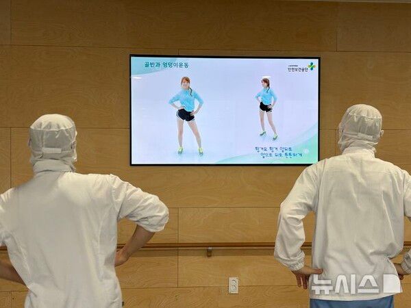 오전 7시56분께 텔레비전에서는 노래가 흘러나와 작업자 흥을 돋웠다. 안전보건공단 준비체조였다. 제조업 특성상 반복 동작이 많아 안전을 위한 스트레칭은 필수다. 체조가 끝나자, 직업훈련교사가 하루 동안 해야 할 일을 설명했다.