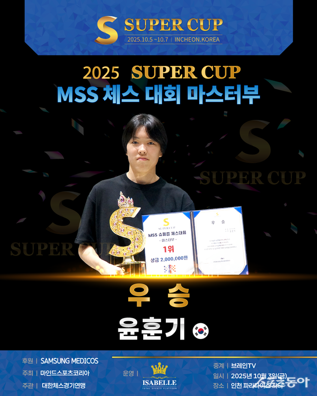 특히 올해 대회는 영국 마인드게임 올림피아드 공식 국가대표 선발전으로 지정되며 그 상징성과 위상이 한층 더 강화됐다. 이로써 슈퍼컵 체스는 단순한 오픈 토너먼트를 넘어, 국제 무대로 도약하는 선수들의 ‘정상 등용문’이자 세계 마인드스포츠의 중심 무대로 자리매김했다.