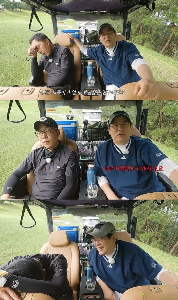 김용만은 이어 "14홀 치는 동안 너도 늙었다. 너도 마음 고생했구나. 나도 늙었지?"라며 오랜 세월 함께한 동료애를 드러냈다.
