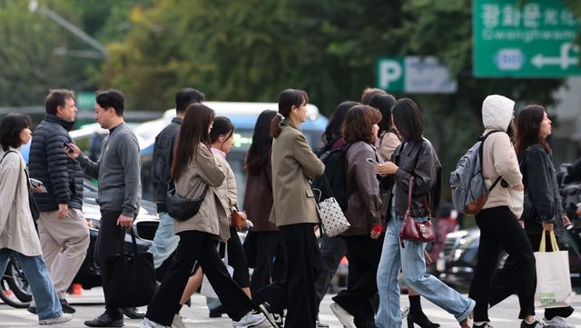서울 광화문 네거리에서 시민들이 몸을 움츠린 채 출근길 발걸음을 재촉하고 있다. / 뉴스1