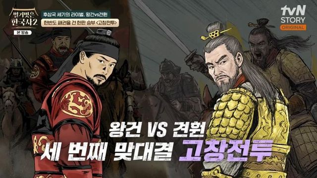 21일 방송된 tvN STORY 예능 프로그램 ‘벌거벗은 한국사2’ 7회에서는 ‘왕좌의 게임’을 주제로 한반도의 주인이 되기 위해 치열하게 싸웠던 세기의 라이벌, 고려 왕건과 후백제 견훤의 영화 같은 왕좌 쟁탈전을 조명했다.