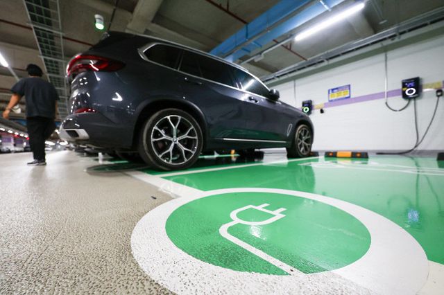 서울 시내 한 전기차 충전소에서 충전 중인 전기차들. ⓒ 연합뉴스