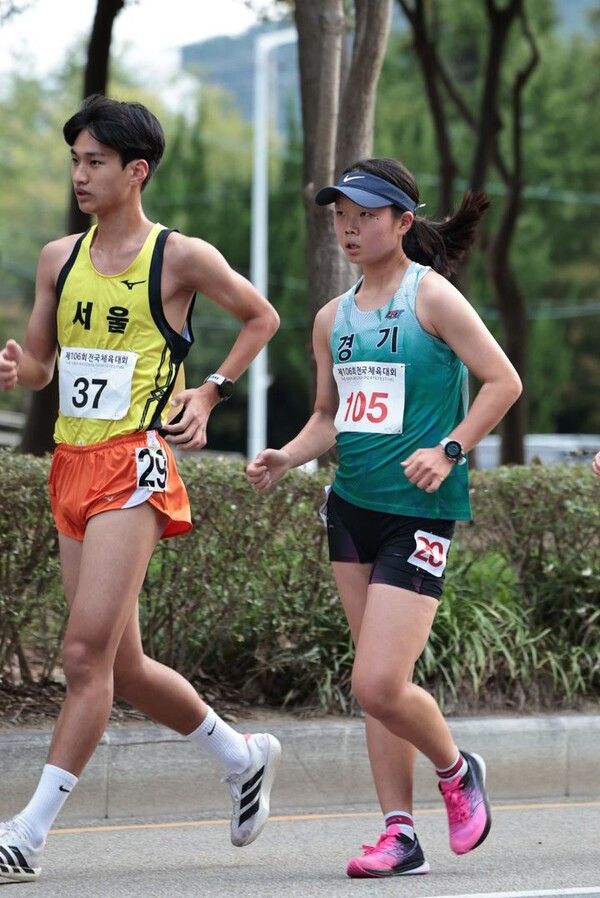 경보 5000m 한국 여자 중등부 기록(23분12초96)도 보유하고 있는 그는 여자 고등부에도 이름을 새겼다.