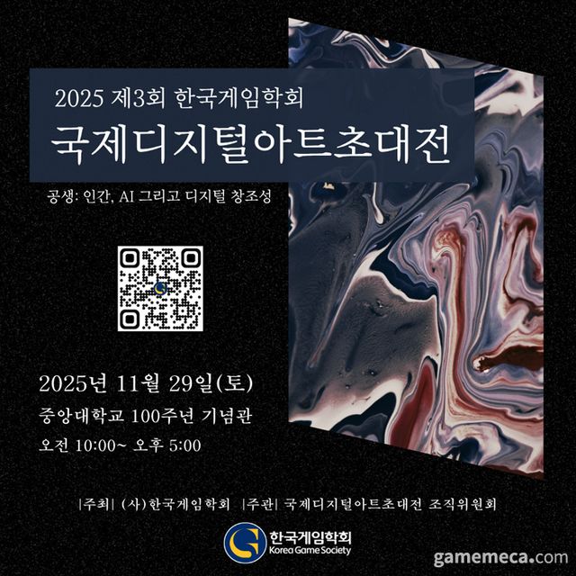 한국게임학회는 오는 11월 29일 중앙대학교 100주년 기념관 1층 로비홀에서 2025 제3회 한국게임학회 국제디지털아트초대전을 개최한다.