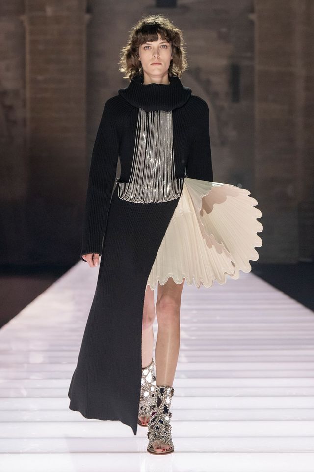 “일상은 물론 특별한 순간에도 의상은 기분, 외모, 그리고 분위기까지 변화시키며(우리 모두가 경험을 통해 알고 있듯) 극적인 역할을 수행한다. 이번 컬렉션은 패션이 지닌 이러한 전환의 힘에 경의를 표하며, 마치 무대 위 배우처럼 삶의 다양한 순간에서 얼마나 인상적인 조연이 될 수 있는지를 보여준다.” 컬렉션 노트에는 패션에 관한 가장 시적인 정의가 적혀 있었다. 루이 비통은, 그리고 제스키에르는 이제 트렌디한 패션이 아니라 더 깊고 짙은 패션의 의미를 고민하고 있다. 모델 줄리아 노비스가 기사복을 입고 무대 위에 첫 발걸음을 내디딜 때, 그녀는 단순히 옷을 입은 것이 아니라 하나의 캐릭터를 체현했다. 복잡한 중세식 튜닉에서 시작해 메탈릭 저지로 제작된 잔 다르크풍 드레스에 이르기까지 각각의 룩은 시대를 초월한 여성성의 다양한 면모를 드러냈다. “여성들을 위한 일상의 갑옷이죠.” 제스키에르가 미소 지으며 한 이 말 속에는 현대 여성이 마주하는 세상에 대한 깊은 이해가 담겨 있다.