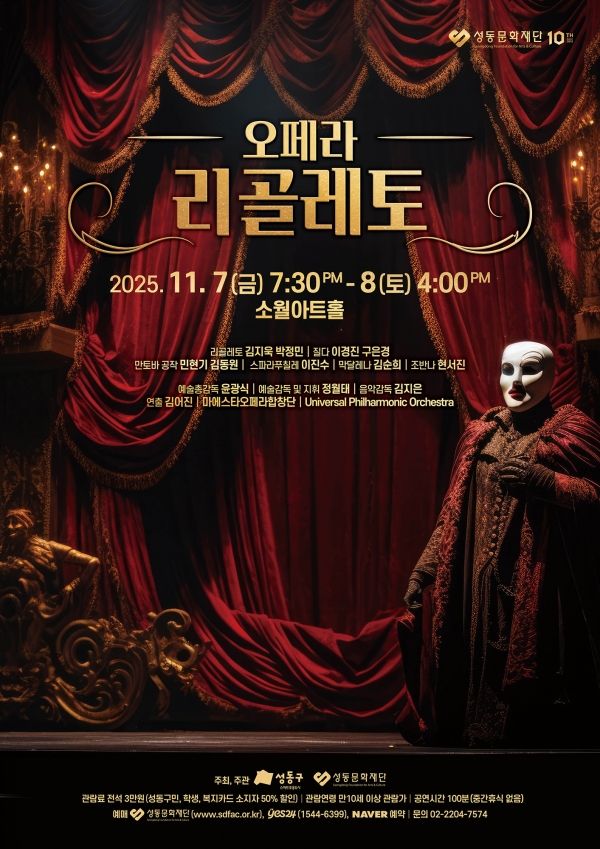 성동문화재단은 깊어가는 가을, 베르디의 걸작 오페라 ‘리골레토(Rigoletto)’를 11월 7일(금)과 8일(토) 서울 성동구 소월아트홀에서 선보인다고 밝혔다.
