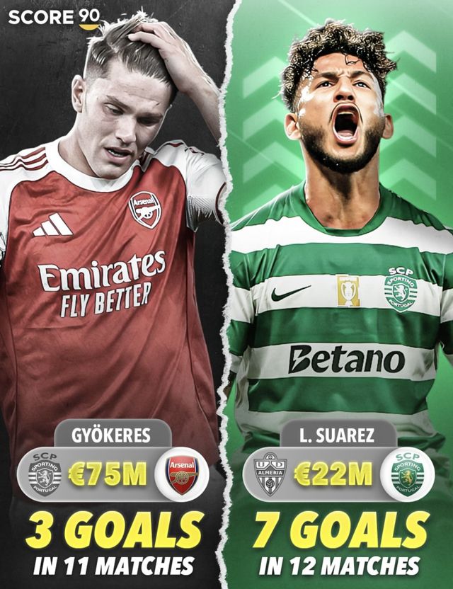 스페인 라리가2(2부) 알메리아에서 뛰다가 스포르팅에 둥지를 튼 수아레스는 이적료 2200만 유로(365억원)를 기록했다. 요케레스가 아스널로 갈 때 스포르팅이 벌어들인 이적료의 3분의 1 수준이다.