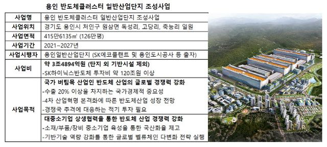 이 사업은 경기 용인시 처인구 원삼면 독성리, 고당리, 죽능리 일원 415만6135㎡(약 126만평)에 50개 이상 반도체 소재·부품·장비업체가 모인 클러스터를 만드는 프로젝트다.