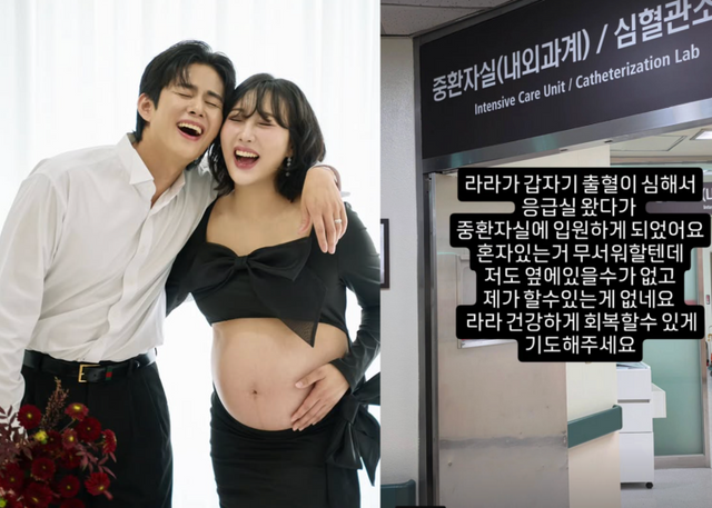 23일 손민수는 자신의 SNS에 “라라가 갑자기 출혈이 심해서 응급실 왔다가 중환자실에 입원하게 됐다”고 전했다.