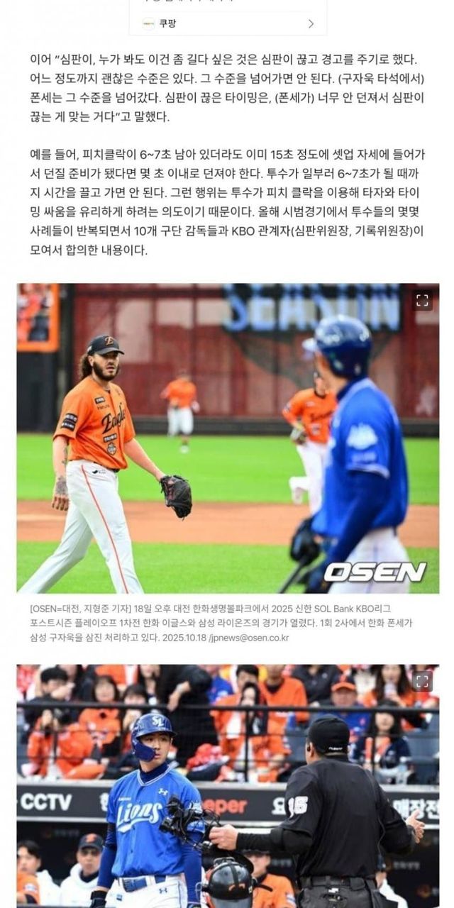이미 10개 구단하고 KBO가 사전에 합의했던 내용이고 폰세는 이미 정규시즌에도 시간끄는 행동으로