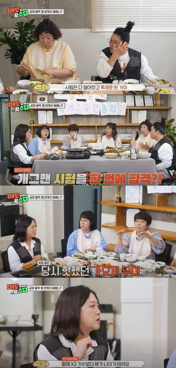 코미디언 김숙이 공채 시험을 한 번에 붙었다고 말했다.