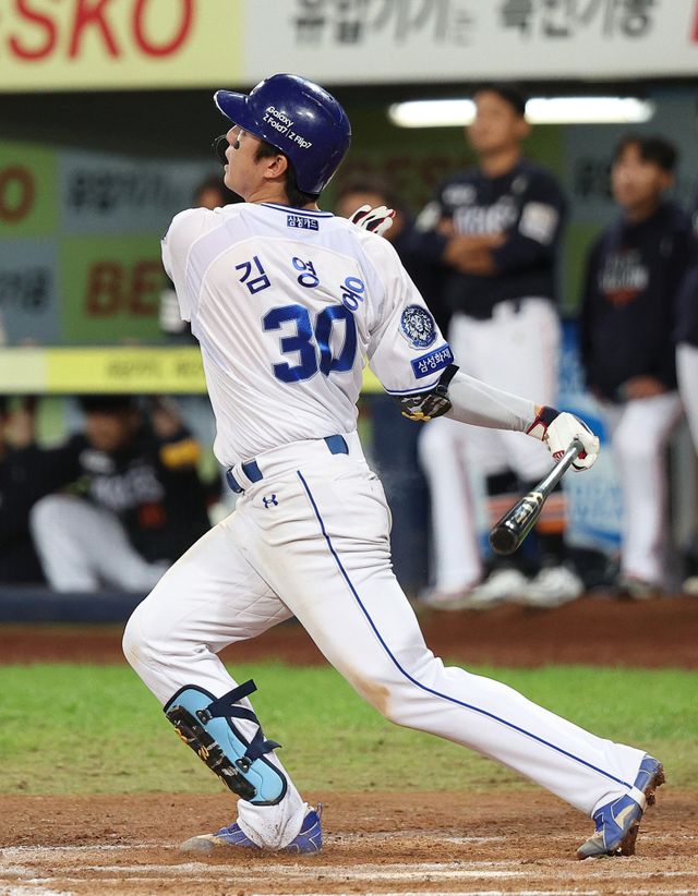 김영웅은 지난 22일 대구 삼성라이온즈파크에서 열린 한화 이글스와의 플레이오프(PO·5전 3승제) 4차전에서 연타석 스리런 홈런으로 팀의 7-4 대역전승을 이끌었다. 1-4로 뒤진 6회 말 동점 스리런 홈런에 이어 4-4로 팽팽하게 맞선 7회 말 역전 결승 스리런으로 전율을 일으켰다. 김영웅의 활약을 앞세워 2승 2패로 시리즈 균형을 맞춘 삼성은 24일 대망의 PO 5차전을 치른다. 벼랑 끝에 기사회생한 박진만 삼성 감독은 PO 4차전 뒤 "오늘 같은 짜릿함은 처음이다. (김영웅이) 쓰러진 팀을 일으켜 세웠다"라고 극찬했다.