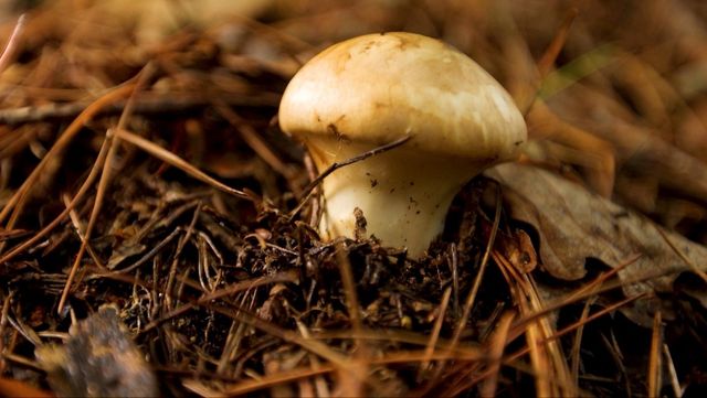 비가 멈추기만을 기다려 며칠째 같은 길을 오르기를 반복한 끝에—드디어! 땅속에 숨은 송이가 슬쩍 모습을 드러낸다.