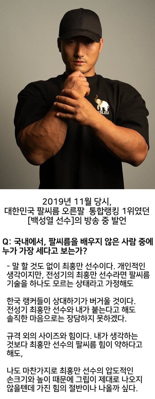 팔씨름 오른팔 한국랭킹 1위였던 백성열 선수가 생각하는