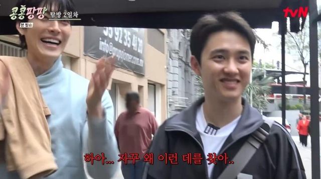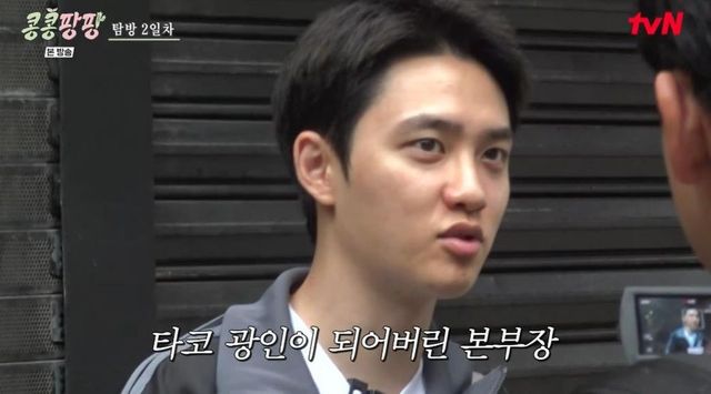 이광수는 “(도경수가) 어제 방에 들어가서 오늘 아침까지 식당밖에 안 찾았다. 계속 ‘타코 타코’ 그러면서”라며 “김치찌개도 이틀 연속으로 먹지 않는데 어제 세 끼를 타코 먹었다. 타코에 미친 사람 같다”라고 말해 웃음을 안겼다.