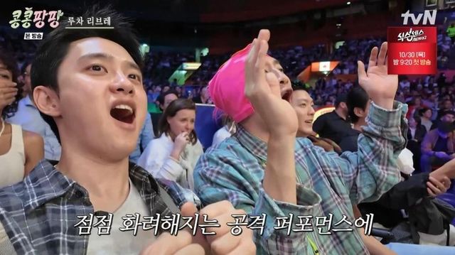 24일 방송된 tvN 예능 프로그램 ‘콩 심은 데 콩 나서 웃음팡 행복팡 해외탐방'(이하 ‘콩콩팡팡’) 2회에서는 멕시코 전통 프로레슬링 경기를 보러 간 ‘KKPP 푸드 해외 탐방단’ 이광수, 김우빈, 도경수의 모습이 그려졌다.
