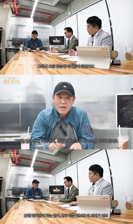 김구라는 막내 작가들의 나아갈 방향에 대해 "실력을 키우거나 AI가 할 수 있는 그런 일 이상을 해야 되겠지. 또 원래 작가들이 하는 일이 AI가 하는 것보다 더 의미가 있죠"라고 덧붙였다.