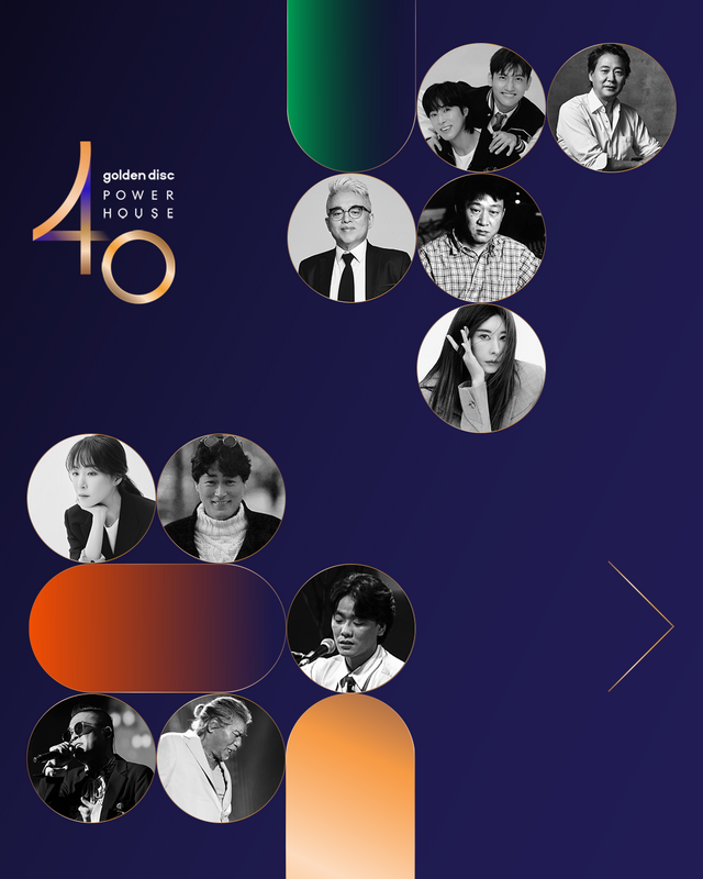 '골든디스크 파워하우스 40'은 과거를 돌아보고, 현재를 점검하고, 미래를 비추는 지표로 해석할 수 있습니다. 새로운 음악 장르를 개척하거나 시대를 대표하는 음악을 만든 인물은 물론, 산업의 시스템을 구축하고 한국 대중음악문화를 세계에 알린 인물까지 다양하게 이름을 올렸어요.