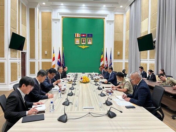 박일 캄보디아 내 재외국민 정부대표는 24일 캄보디아 프놈펜에서 속 펄 캄보디아 내무부 차관과 '한-캄보디아 온라인스캠 공동대응팀(가칭)' 설립을 위한 1차 회의를 가졌다고 외교부가 밝혔다.