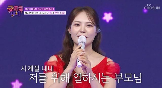 ‘미스&미스터’ 멤버들이 다양한 사연과 함께 노래를 준비한 이 날, 첫 주자로 나선 미스김은 무대에 앞서 “저희 부모님은 매년 봄이 되면 전국의 아카시아를 찾아서 여름이 끝날 때까지 꿀을 따신다. 그리고 가을과 겨울에는 배추 농사를 지으신다. 병원에 가실 시간도 없이 허리가 굽도록 하루 종일 일만 하시는데 요즘 이상한 소문이 돈다”고 말을 꺼냈다.