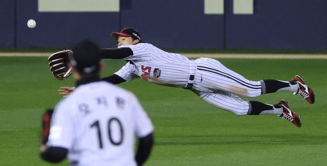 2023년 11월 13일 서울 잠실구장에서 열린 KT 위즈와의 한국시리즈(KS) 5차전. LG 트윈스가 3-0으로 앞선 4회 초 2사 1·2루 수비 상황에서 KT 대타 김민혁이 등장했다. LG 선발 케이시 켈리의 커브를 받아친 타구가 좌중간으로 날카롭게 뻗었다. KT 팬들은 적시타를 예감하며 함성을 질렀다.