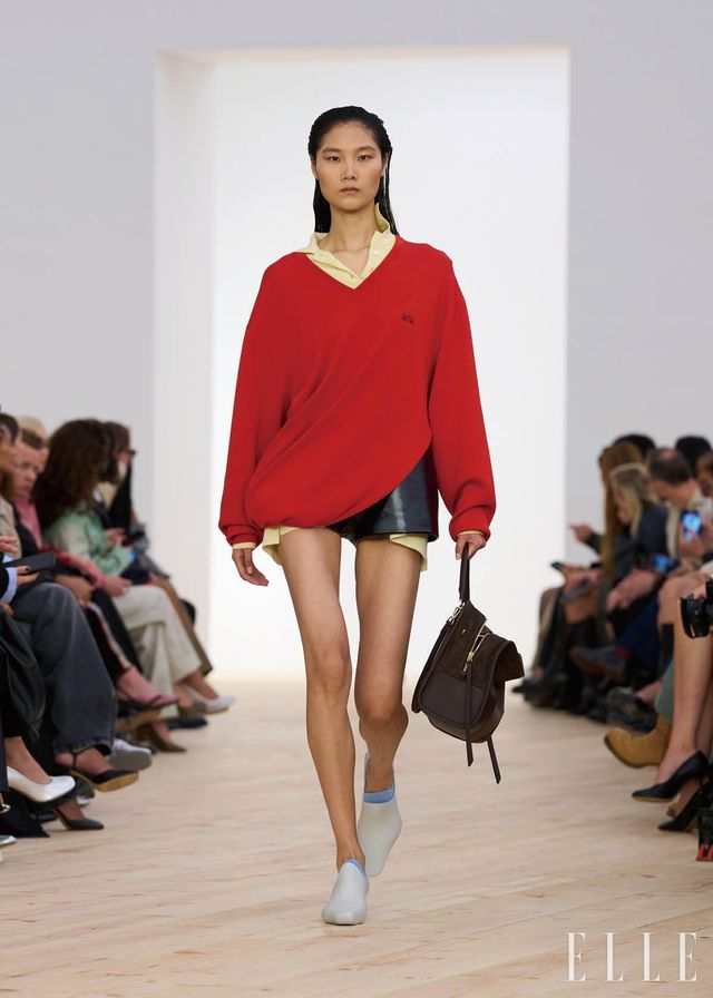 이번 컬렉션은 스포츠웨어의 전형적 요소에서 출발해 가죽 공예를 통해 간결하면서도 조형적 형태와 원초적인 컬러를 구현한다. 그 형태에는 관능미와 열정이 스며 있다. 쇼 공간에 걸린 엘스워스 켈리(ELLSWORTH KELLY)의 ‘옐로 패널 위드 레드 커브(YELLOW PANEL WITH RED CURVE, 1989년)’는 이런 요소를 한데 결집하는 오브제로 작용한다. 로에베가 가진 생동감과 텍스처, 로에베 고향인 스페인의 쾌활함을 담아낸 이 작품은 모두 공감할 수 있는 개인적 낙관주의를 상징하며, 컬렉션의 서막과 여정의 출발점을 알린다.