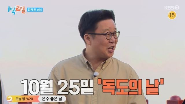 그런 가운데 서경덕 교수가 깜짝 게스트로 등장했다. 딘딘은 “교수님 만나기 전엔 한국 역사에 대해 몰랐다. 교수님한테 배우고 재미있어서 눈물도 흘렸다”라고 인연을 밝혔다. 서경덕은 10월 25일이 독도의 날이라고 밝히며 “의미를 되새기기 위해 멤버들과 방문할 예정”이라고 예고했다.